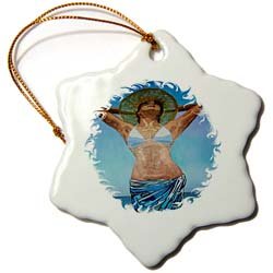 Woman Summer Sarong Ornament is measuring 3 inches. This Glossy Porcelain Snowflake Ornament is perfect gift for grandparents, aunts, uncles and friends. Commemorate each holiday season with a new ornament. Image is printed on both sides. Comes with the gold hanging cord.